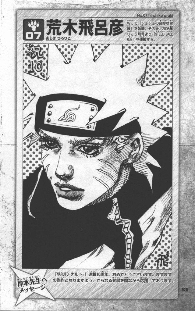 Quando uma obra chega a um marco histórico, como um aniversário por exemplo, alguns autores tiram um tempo para criar uma arte comemorativa desta obra usando seu próprio traço. Já compartilhamos algumas artes assim no passado, mas nenhuma delas é tão diferente quanto este desenho de Naruto feito por Hirohiko Araki, o criador de Jojo’s Bizzare Adventure. Confira: